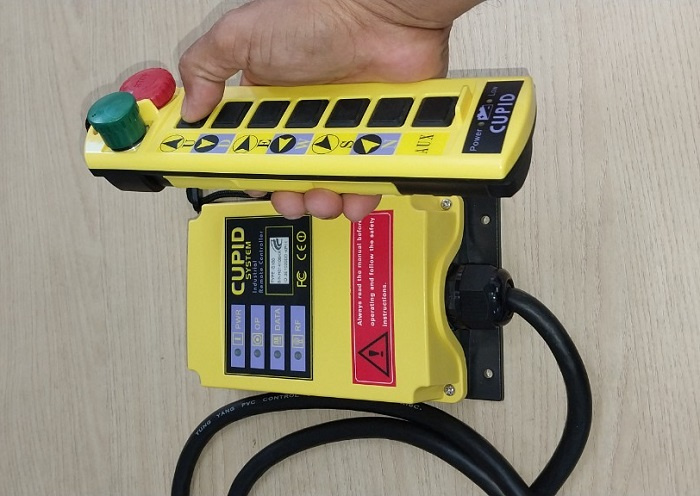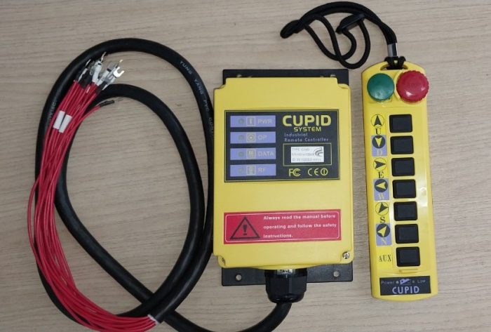 Bộ điều khiển cẩu trục từ xa Cupid Q100 Đài Loan bao gồm 1 bộ thu và 2 bộ phát. Có thể sử dụng cho nhiều hệ thống palang cẩu trục.