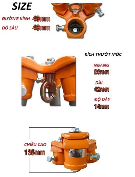 - Size và đường kính nối là: 49mm giúp siết và giữ chặt chân giá đỡ