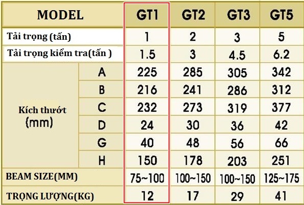 Tính năng của GT1 (xe rùa kéo pa lăng xích tay)