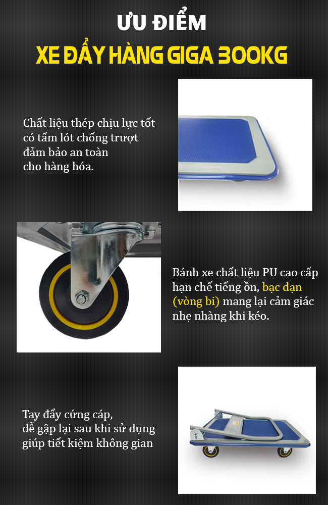 Thông số xe đẩy hàng 4 bánh gấp gọn 300kg GIGA – Ssangyong