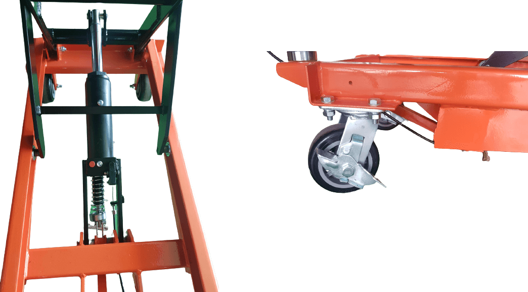 - Hoạt động nâng hạ bằng bơm thủy lực đảm bảo an toàn và tiết kiệm sức lực.
