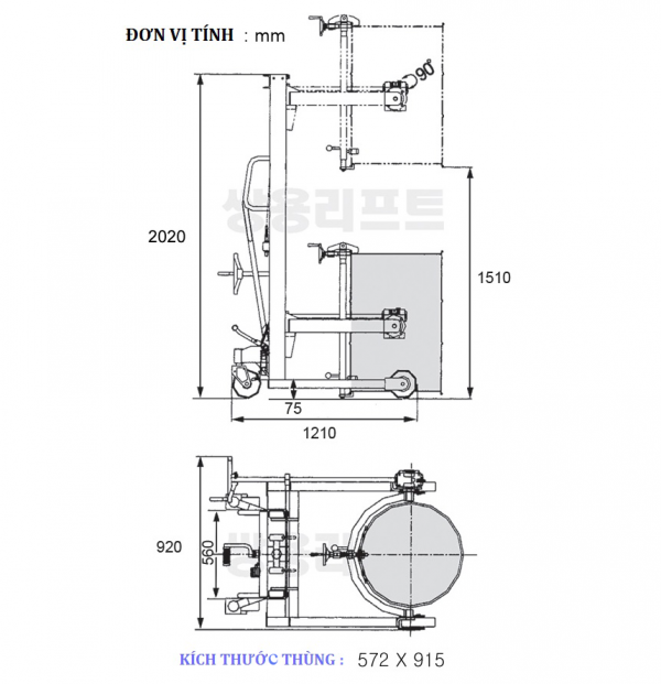 - Đa dạng khả năng từ nâng, quay, đổ thùng phuy, rót chất lỏng trong phuy một cách dễ dàng.