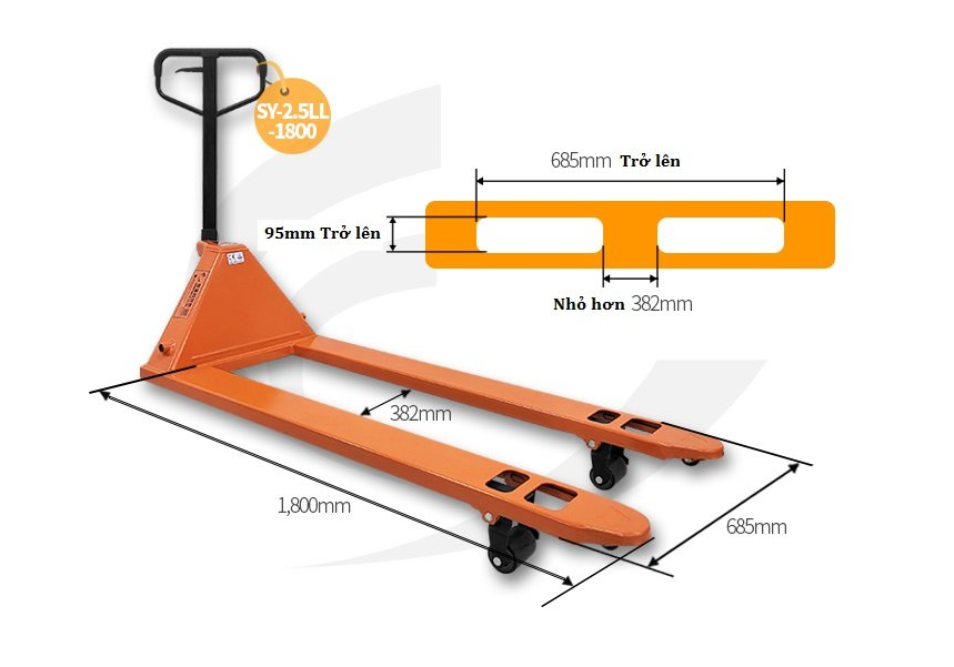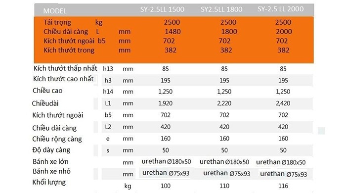 Thông số kĩ thuật các xe nâng tay 2.5 tấn càng dài 1m8 Ssangyong: