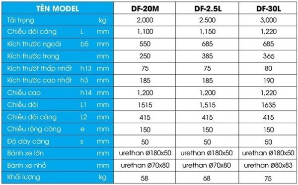 Phần khung thép của xe chắc chắn, đảm bảo chịu được hàng hóa có khối lượng lớn lên tới 2,5 tấn. Tay cầm được thiết kế 3 nấc, chiều cao của tay cầm phù hợp với người dùng tại Việt Nam. Bánh xe được làm từ công nghệ urethan, độ bền cao và giảm thiểu tiếng ồn khi vận chuyển.